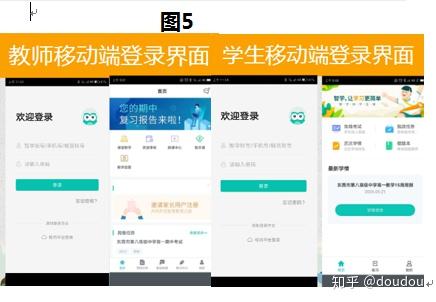 2)移动端。在手机里找到下载的智学网APP,点击进入登录界面,输入账号密码后显示移动端首页,教师端和学生端分别如图5所示: