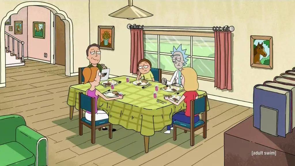 在《瑞克与莫蒂》中,最常出现的镜头便是:全景、正反打,在视觉上造成封闭连贯的效果,从而使观众更注意对话内容。
