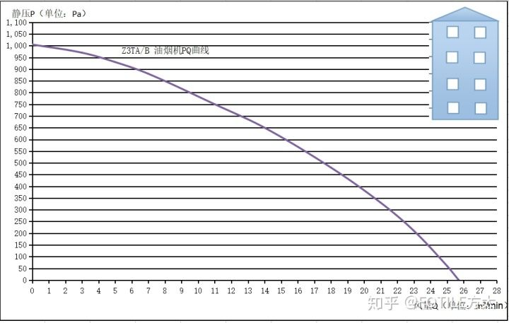 当排烟阻力为0的时候,吸油烟机能够达到爆炒最大风量;等排烟阻力达到最大静压值的时候,吸油烟机实际运行风量降到0,完全无法对外排烟。