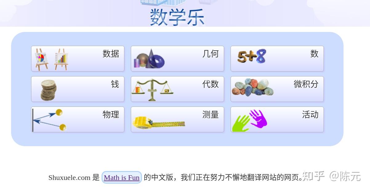 该网站是 Math is Fun 的中文版本。Math is Fun 上面内容更多,如果你英语不错的话,直接去源头网站更好。