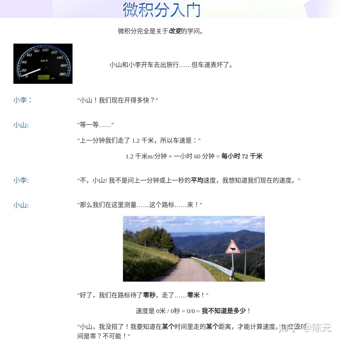 以故事的形式,给出一个求解某个时间点的瞬时速度的问题,慢慢用最基础的数学知识,推导出微分的概念: