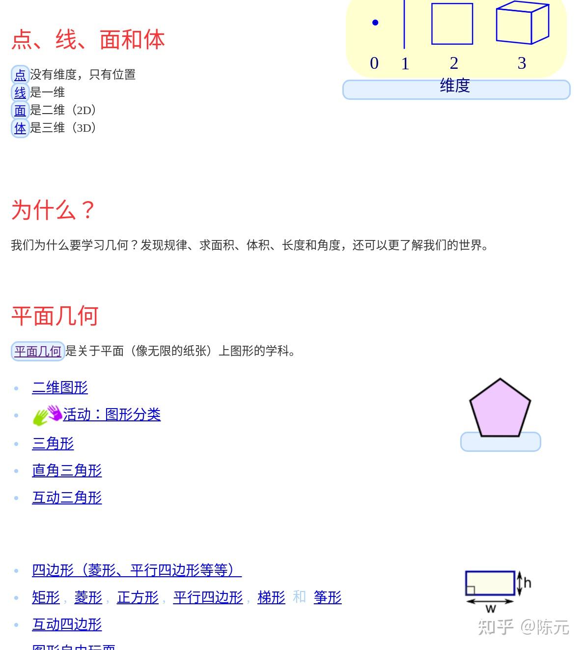 由上图可以看到,该网站涵盖的内容非常广泛,我们重点展示一下数学部分的内容,比如几何: