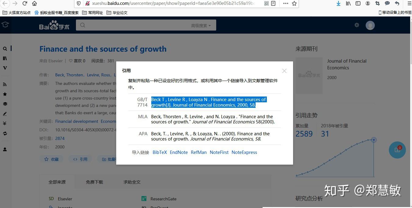 ⑤引用:比如想引用Taylor&Francis上的某篇文章,但是上面引用的格式不符合学校要求,可以复制DOI号,此时百度学术可以直接转到该篇文章,再从百度学术复制引用格式