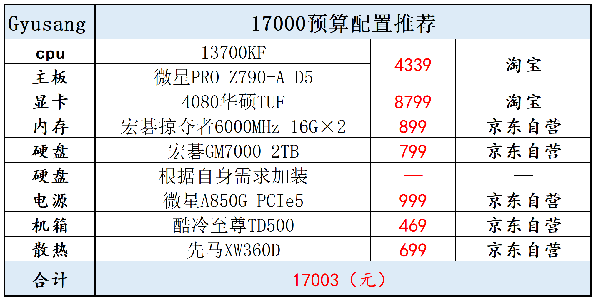 17000预算可以13700KF+4080
