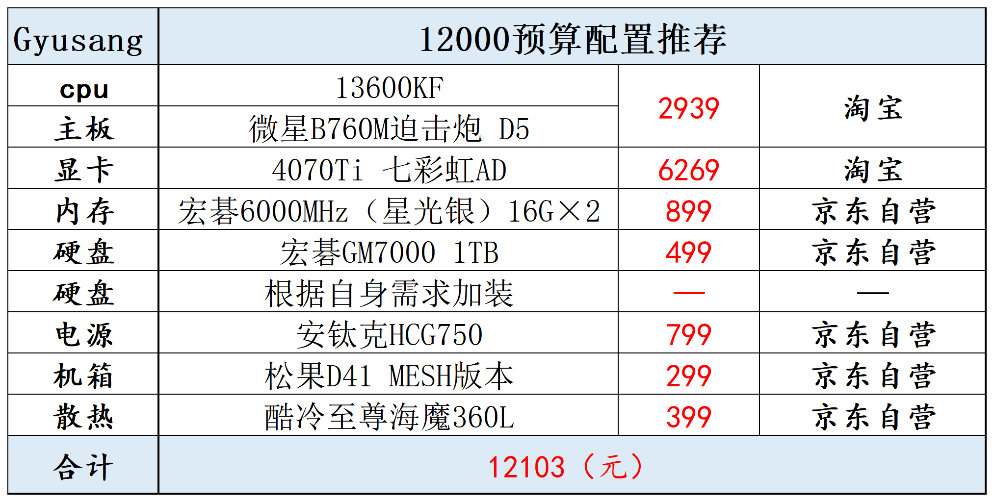相比12000预算,CPU升级了13700F,显卡升级了4080,预算在14000,CPU就可以继续用13600KF。