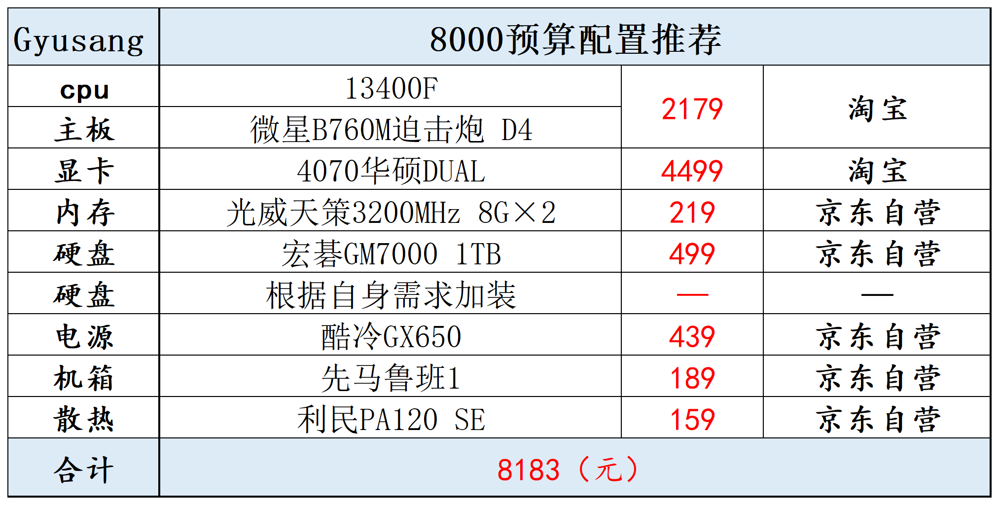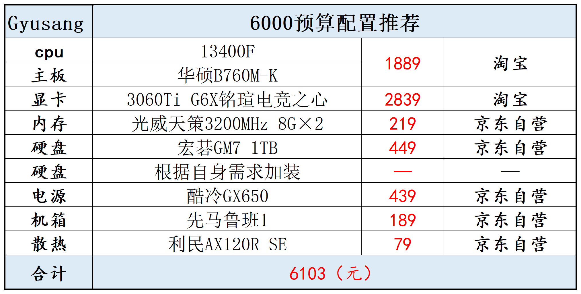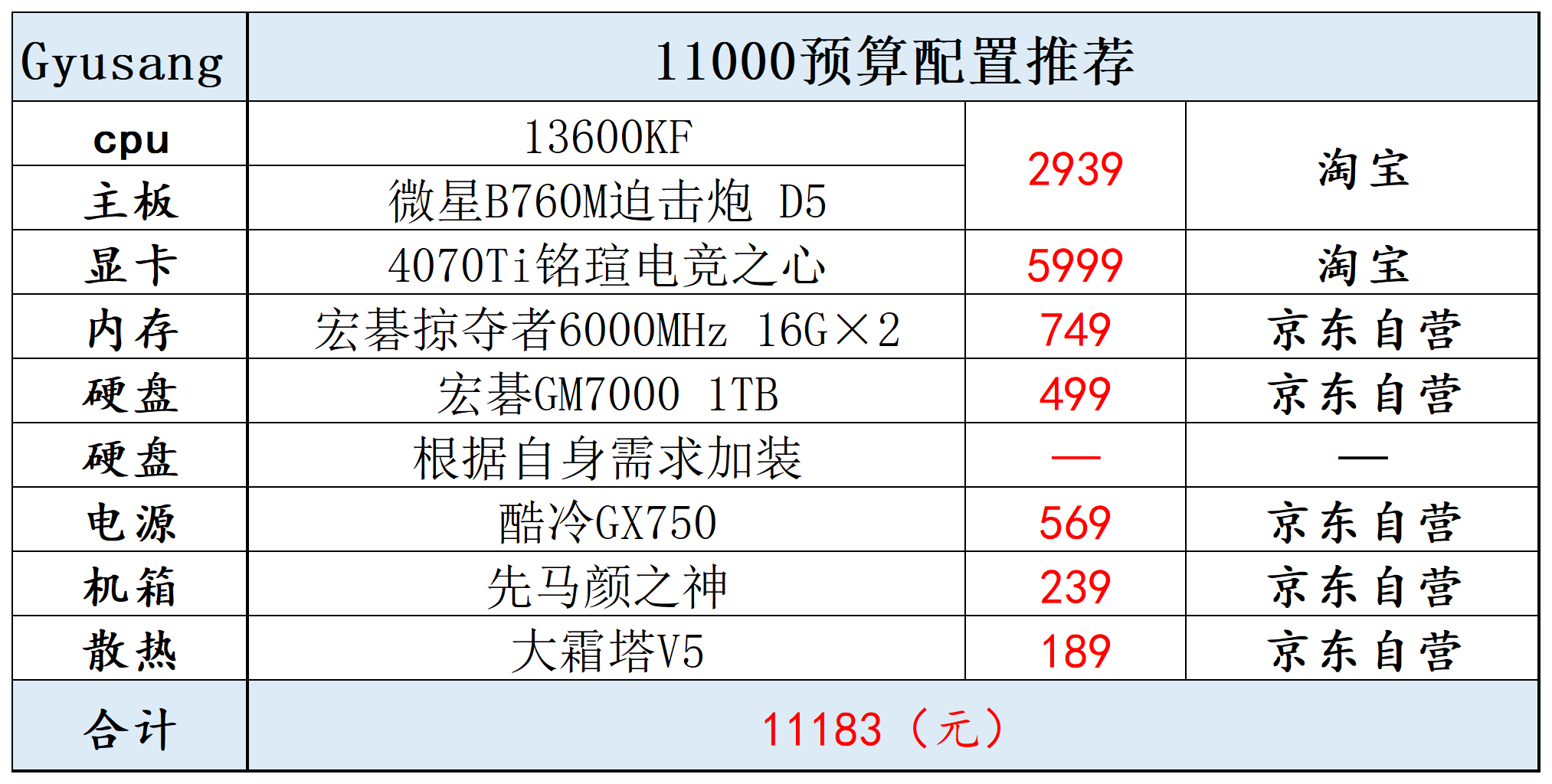 2023年四月配置推荐(这篇文章每月都会更新,可以收藏,如果对您有帮助,希望能点个赞支持一下~ @Gyusang 也可以关注一波)