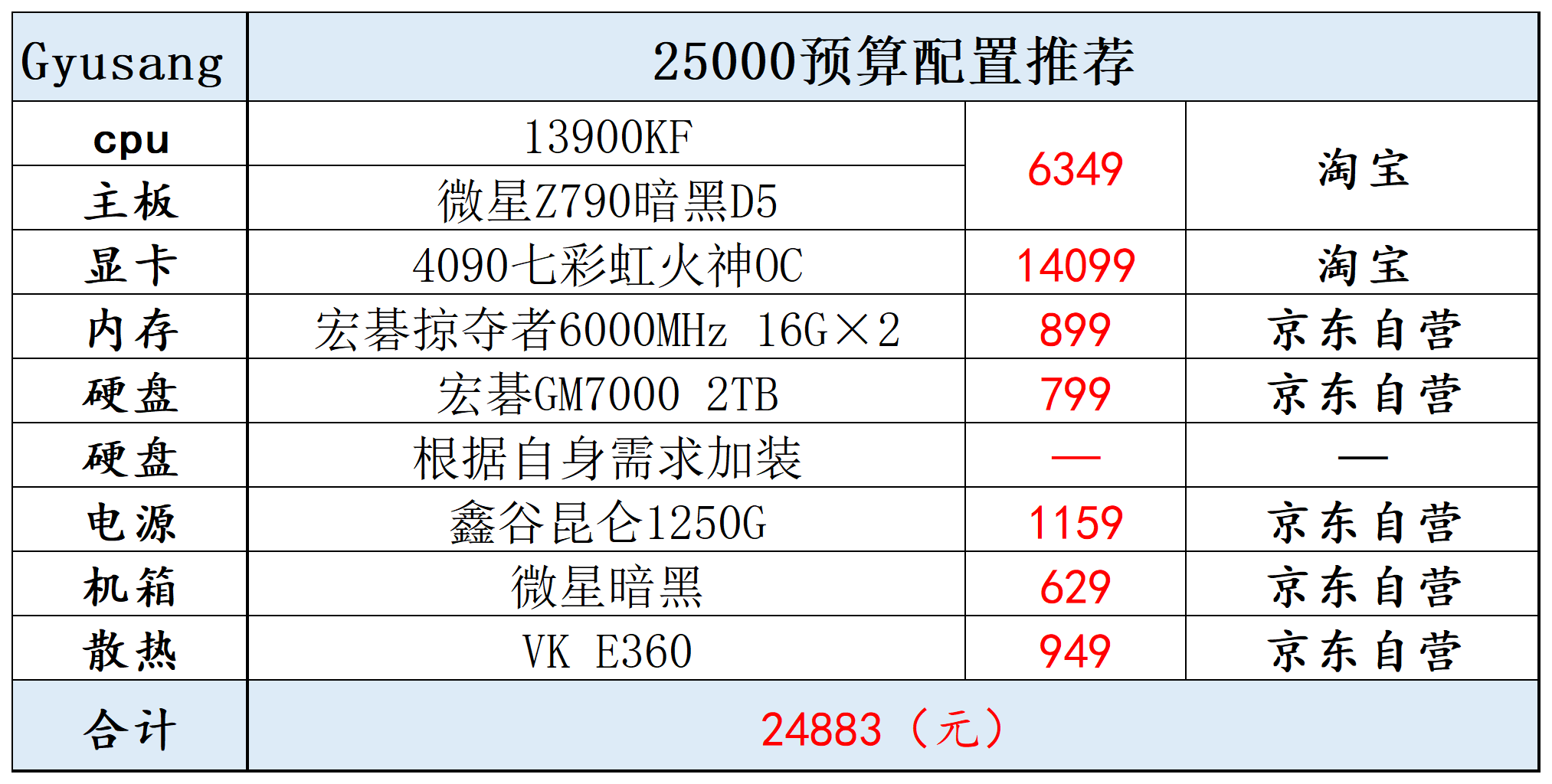 25000预算可以顶配:13900KF+4090