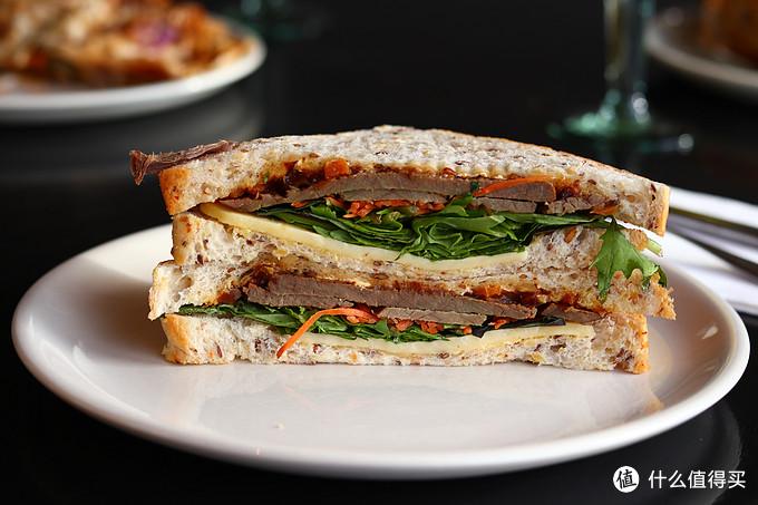 早上花不到10分钟就能做好一个三明治,如果前一天晚上把料备好,早上3分钟就能做好,非常省事。