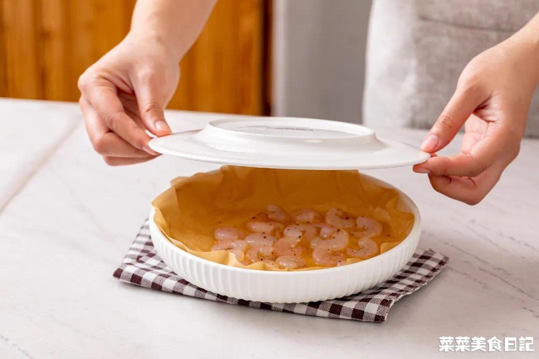 (3)盖上保鲜膜,保鲜膜扎几个洞,或者用盘子加个盖子。(此步可省略)