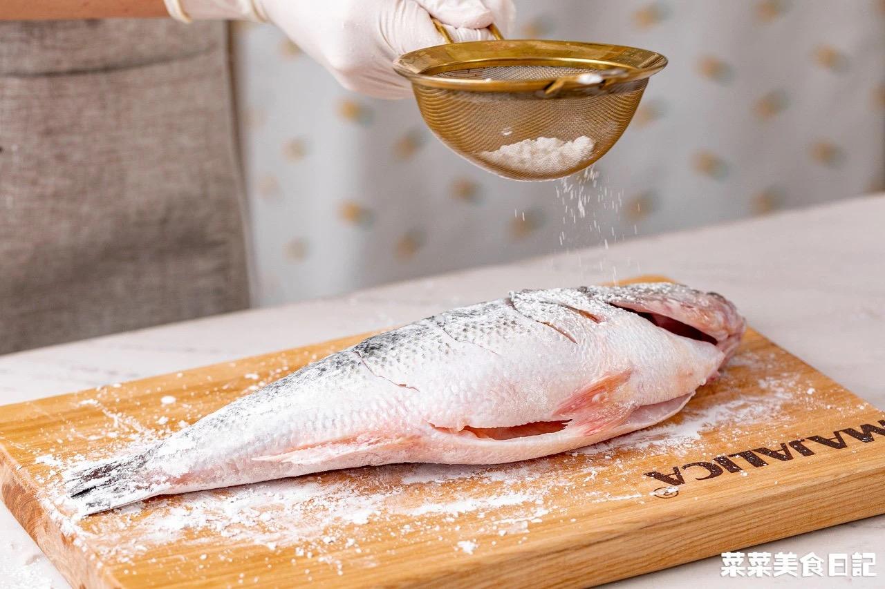3、在鱼身上撒上一层薄薄的玉米淀粉,这是五星级酒店的蒸鱼秘方,鱼蒸熟后表皮会更嫩