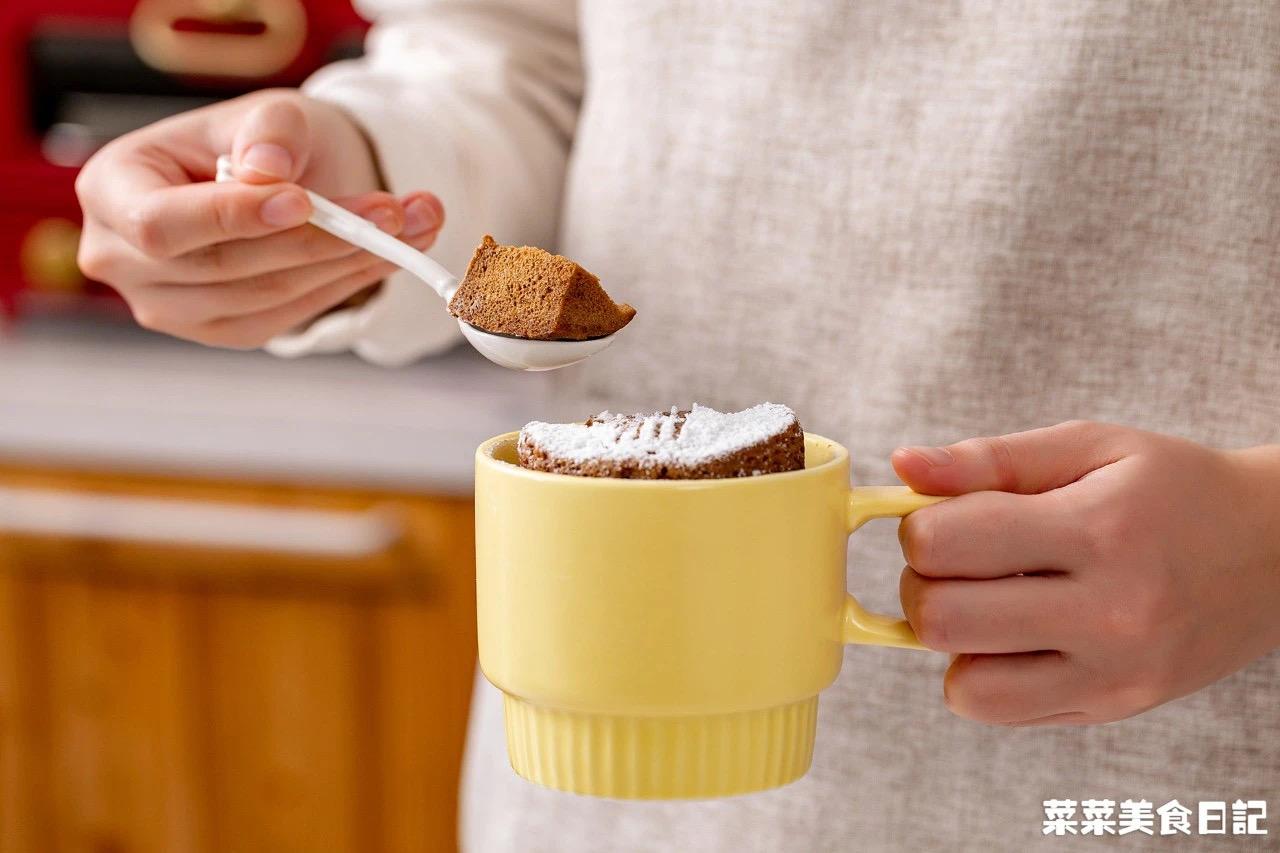 只要所有材料都放进马克杯里搅和均匀,微波炉一叮,就能吃到松软香甜的马芬蛋糕。