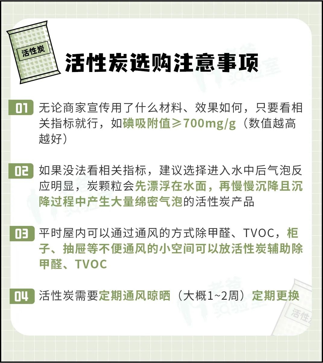 除了除醛率外,一些朋友还会购买可以变色的活性炭。