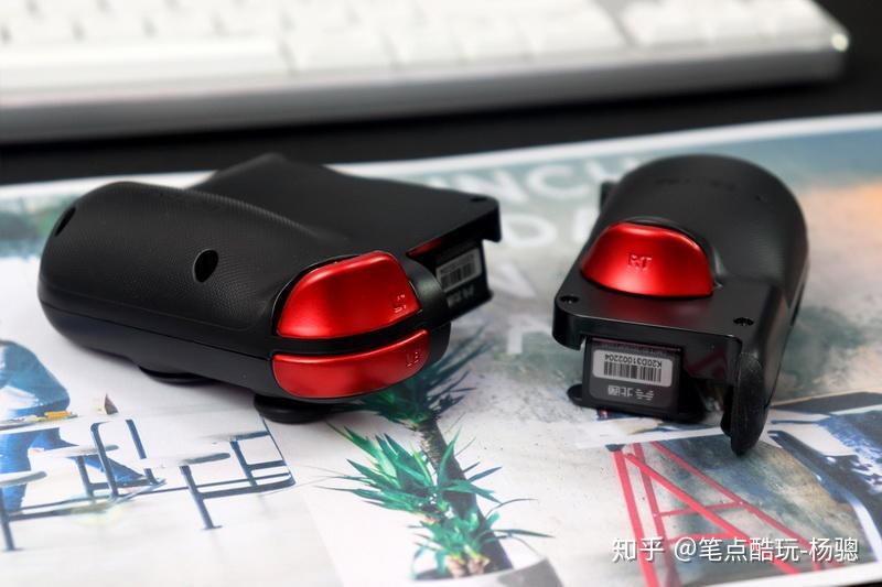 黑底色机身配红色扳机(肩键),3枚扳机键均采用电竞鼠标级别的机械微动开关,按压反馈灵敏,左边两枚LT、LB做加宽处理,指尖按压贴合感很好。右侧的RT按键位置稍微下移,右手食指或中指操作都比较符合手型。