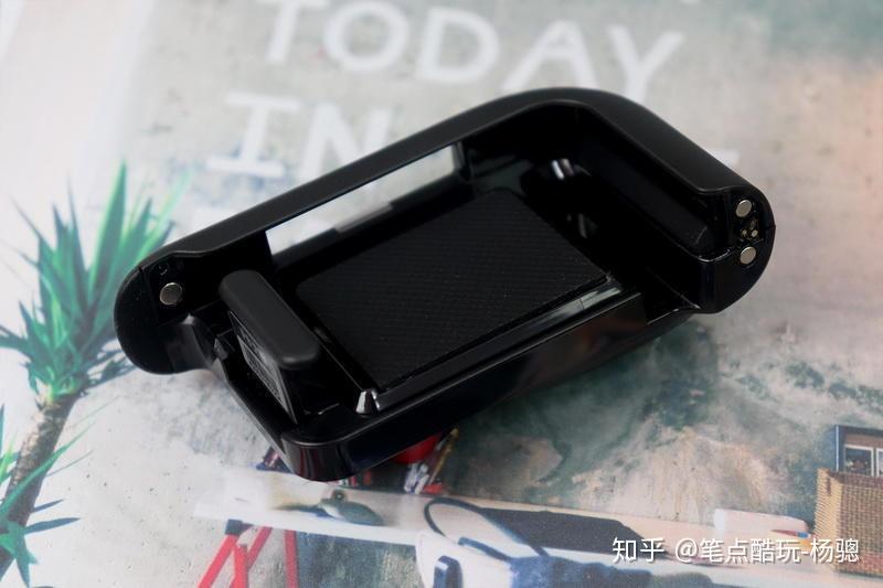 牢固的磁吸力度也将易丢的问题完全解决,下面3张图可以看到左右手柄的磁吸对接点,上2下1共3个;从下图可以看到,左手柄上方两个磁吸点之间,还有3个小电极可以左右对接。