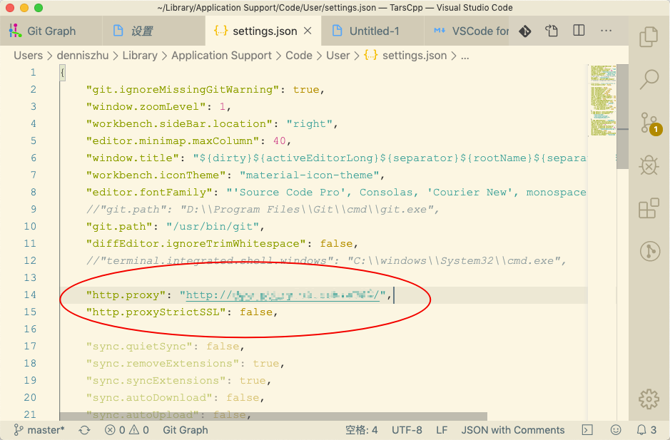 "http.proxy": "http://公司代理地址IP:端口/",