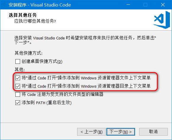如果忘记勾选,也可参考下文设置,但最好建议 重装 VSCode!!!