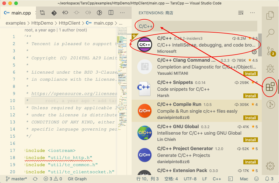 安装完此插件后,再安装下 VSCode_cpptools 工具。它是由微软 VSCode C++团队负责维护的。