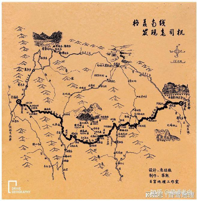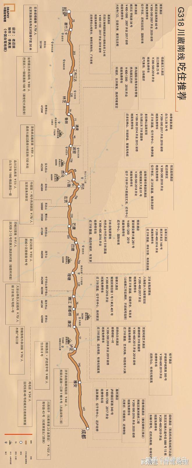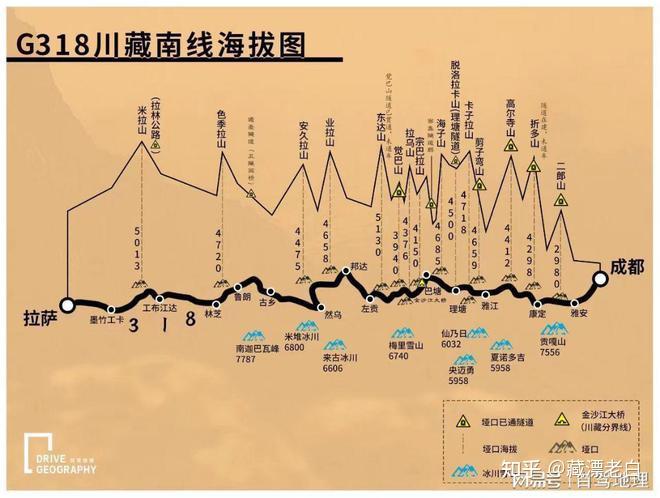 G318川藏南线海拔图,制图@《中国自驾地理》