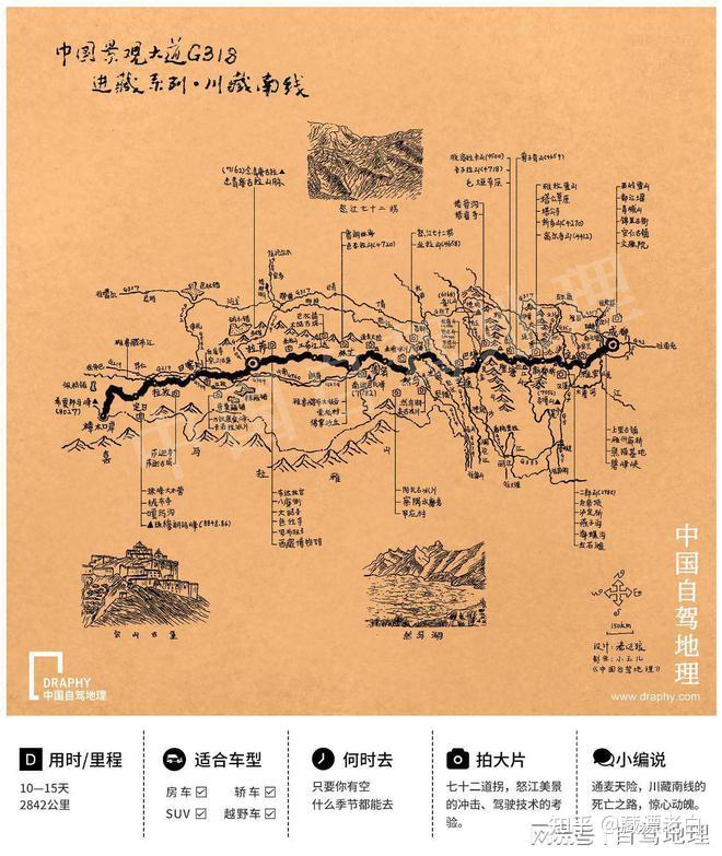 G318川藏南线自驾线路总览示意图,制图@《中国自驾地理》
