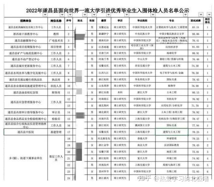 想必各位小伙伴们都看到了最近的新闻,浙江省丽水市遂昌县发布一份名为《2022年遂昌县面向世界一流大学引进优秀毕业生入围体检人员公告》的公示名单,引得网友讨论,这其实主要反映了当下高学历人才的就业意向。北极喵认为这背后有以下几个原因: