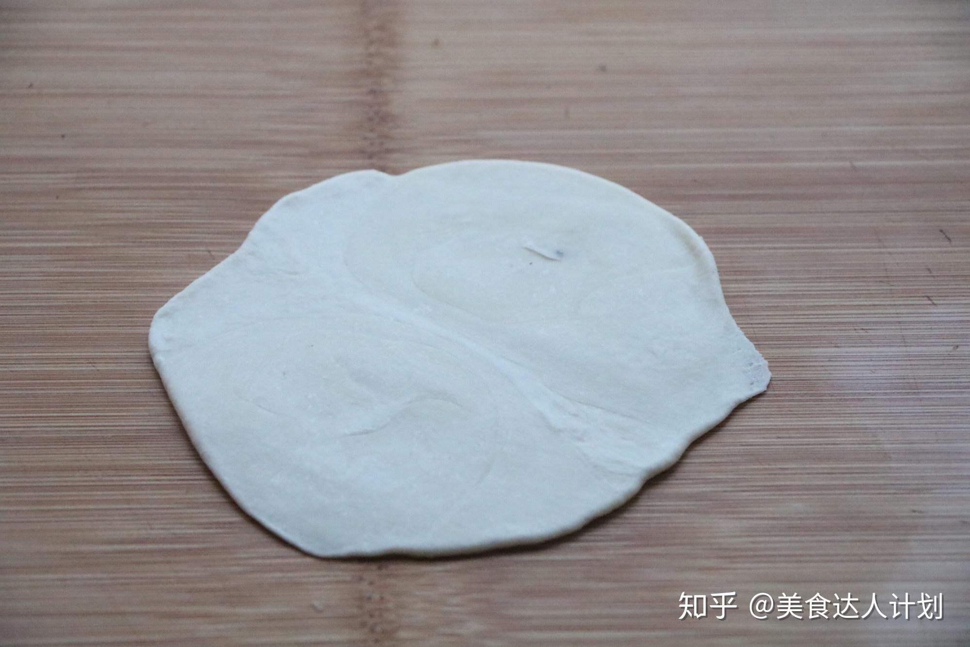8、取一个擀好的面团,中间用手指按压一下,然后把两头折回来,按扁整理成圆形;