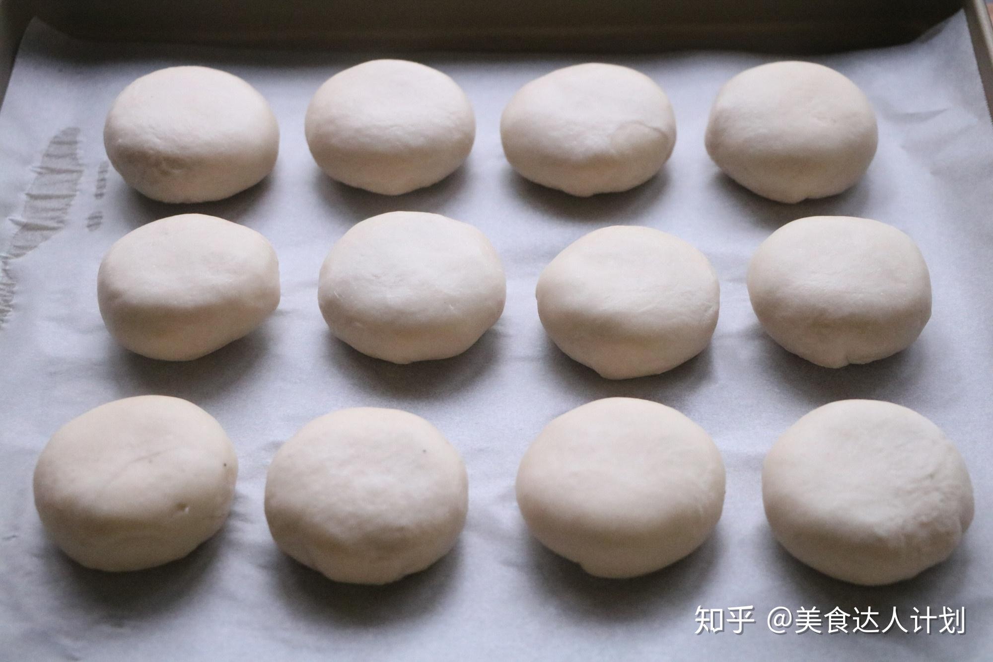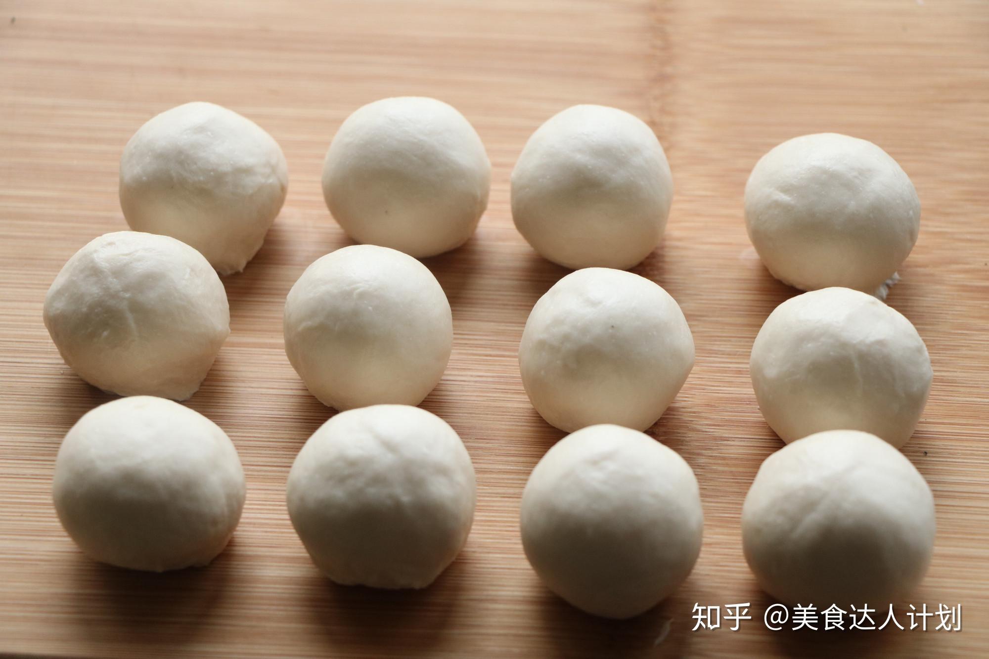2、把水油皮面团和油酥面团分别分成均匀的12等份,把水油皮面团稍微抻薄一点,再把油酥面团包进去;