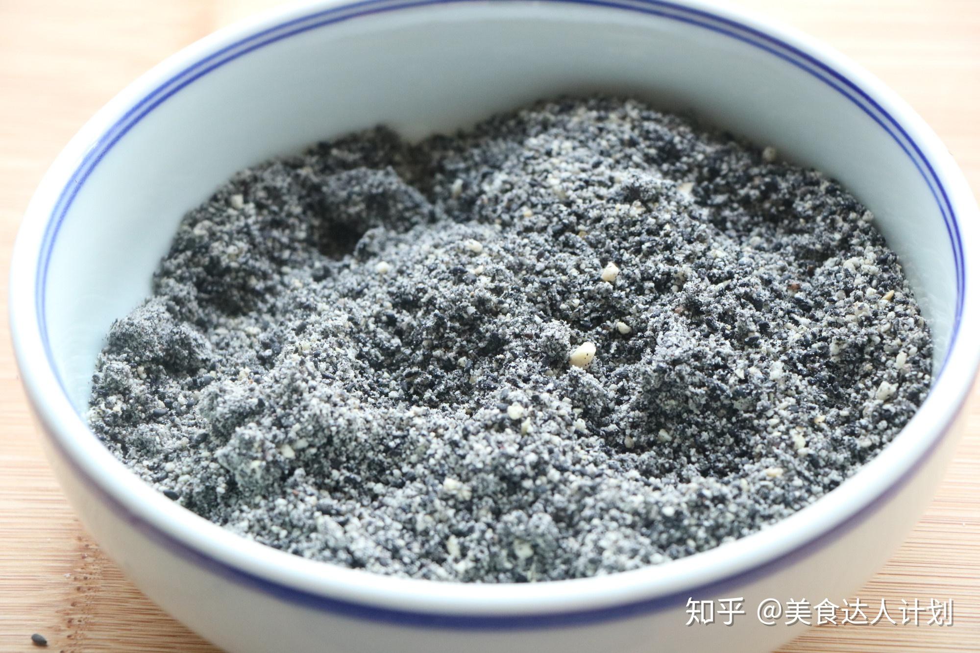 6、准备馅料部分;芝麻和花生提前烤熟,然后用料理机打碎,倒在一个稍微大一点的盆中;