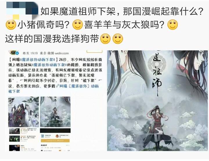 这一消息引得网络上风波四起,理智的魔道女孩秉承着AC官微爸爸的信念,相信《魔道祖师》只是暂时告别还会回来。可总有那么一些不和谐的声音在这个时候出现。
