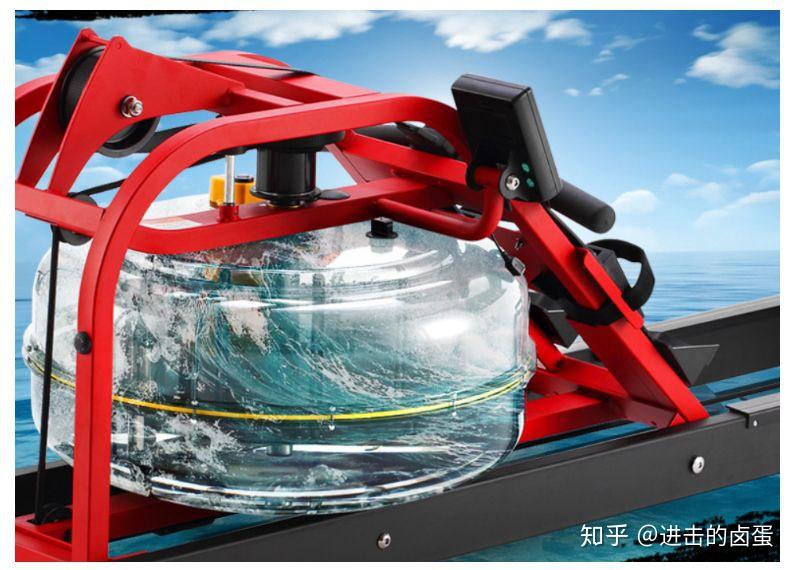水阻型划船机,顾名思义,通过水箱里的桨叶旋转产生的水阻。