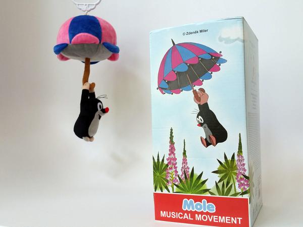《鼹鼠的故事》这个毛绒玩具是一个婴儿玩具。。。挂在儿童床上,拉一下,里边的八音盒就会放一会儿原片里的音乐。出品公司是捷克的 Moravská ústředna Brno,有一系列的鼹鼠的故事毛绒玩具,看中这个主要是感觉伞很带感。