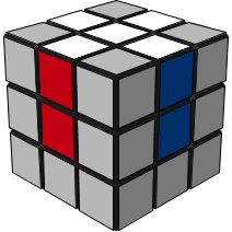 例如:x,以正面视角,将魔方整体以R方向顺时针旋转90°。即魔方整体沿竖直面“向上”转90°。 [3-4]
