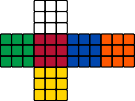 鲁比克公司听取色彩研究者的意见,将相对两面的颜色安排为相同色系,也就是白黄相对、红橘相对、蓝绿相对,且蓝、橘、黄三色以顺时钟排列。即为上黄下白,前蓝后绿,左橙右红的国际标准配色。