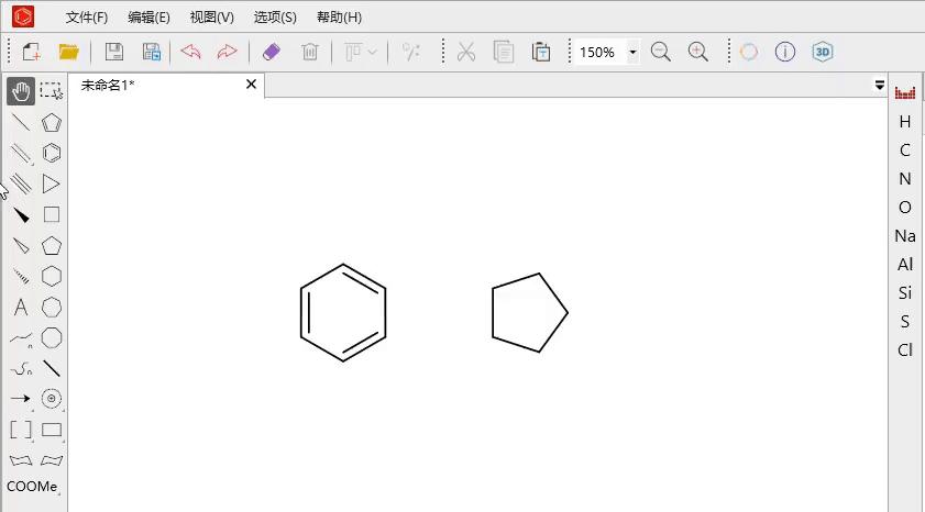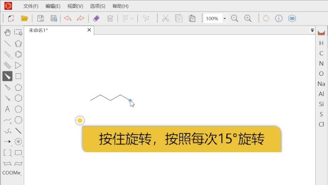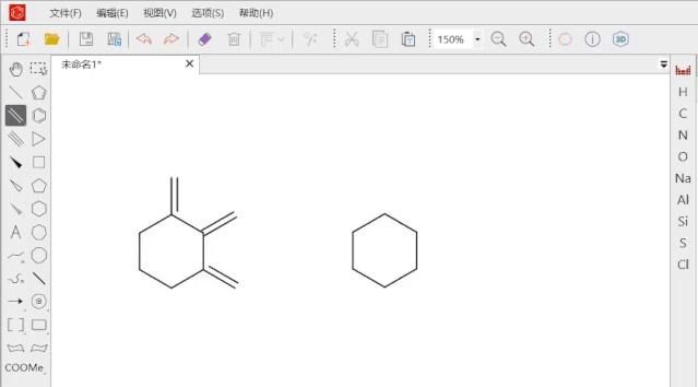 使用化学键绘制结构式非常的简单,只需要选择需要的化学键,点击在画板的相应位置,就会出现一个化学键。如果还需要继续添加,只要在键尾端点处依次单击即可。