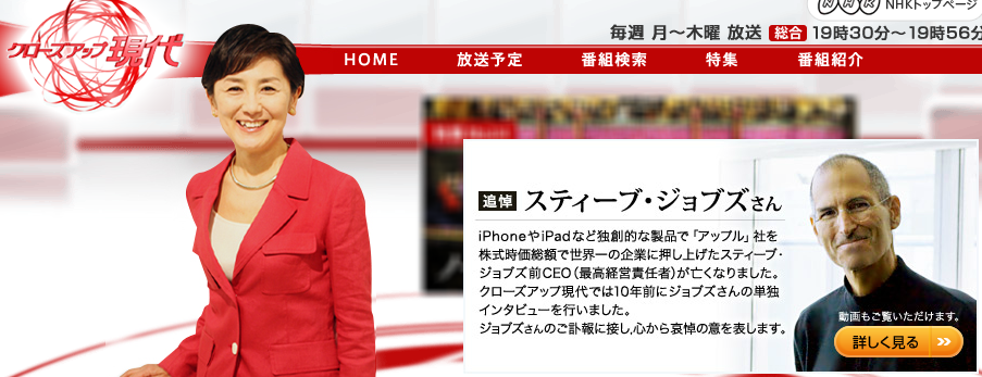 特别是正在就职活动的朋友们,这个节目会为你深刻的了解日本社会注目的一些国内外发生的问题。连续担任23年的主持人主持人国谷裕子(58岁)已宣布退休,2000年采访过乔布斯,英语很棒.