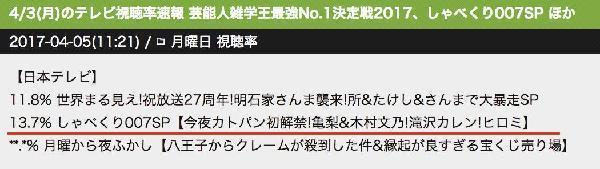 现在将类似“ガンダム芸人”(高达艺人)这样拥有某个共同特征的艺人聚集起来,组成一期节目的企划特别受观众欢迎。该节目收视率号称“业界第一名”,非常受观众欢迎。
