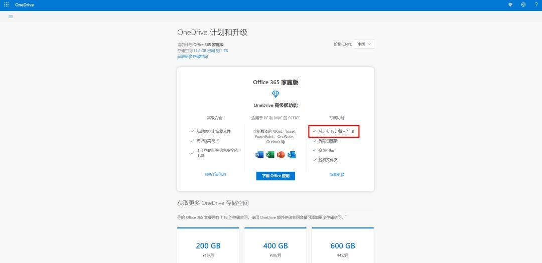 对于所有用户,OneDrive 提供了 5 GB 的存储空间,而如果你订阅了 Office 365 家庭版,还能额外获得 1 TB 的存储空间。