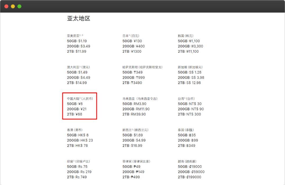 和前面介绍的两个产品一样,iCloud 提供了 付费扩展空间 的订阅方案,不同地区的价格略有差别,目前我订阅的是 50 GB 的 iCloud 空间,费用为 6 元/月。