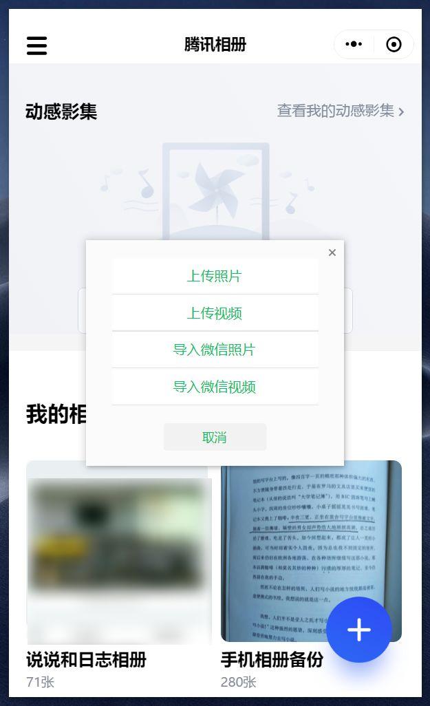 腾讯相册,是腾讯推出的一个微信小程序,可用于 上传手机或微信的图片和视频 ,支持登录 QQ 或微信账号。