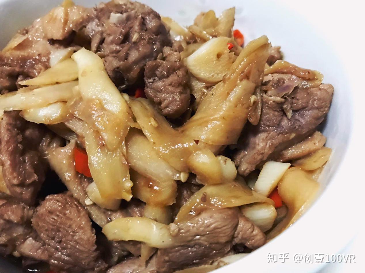 3.炒干水分的鸭子盛出备用,子姜斜切大片。