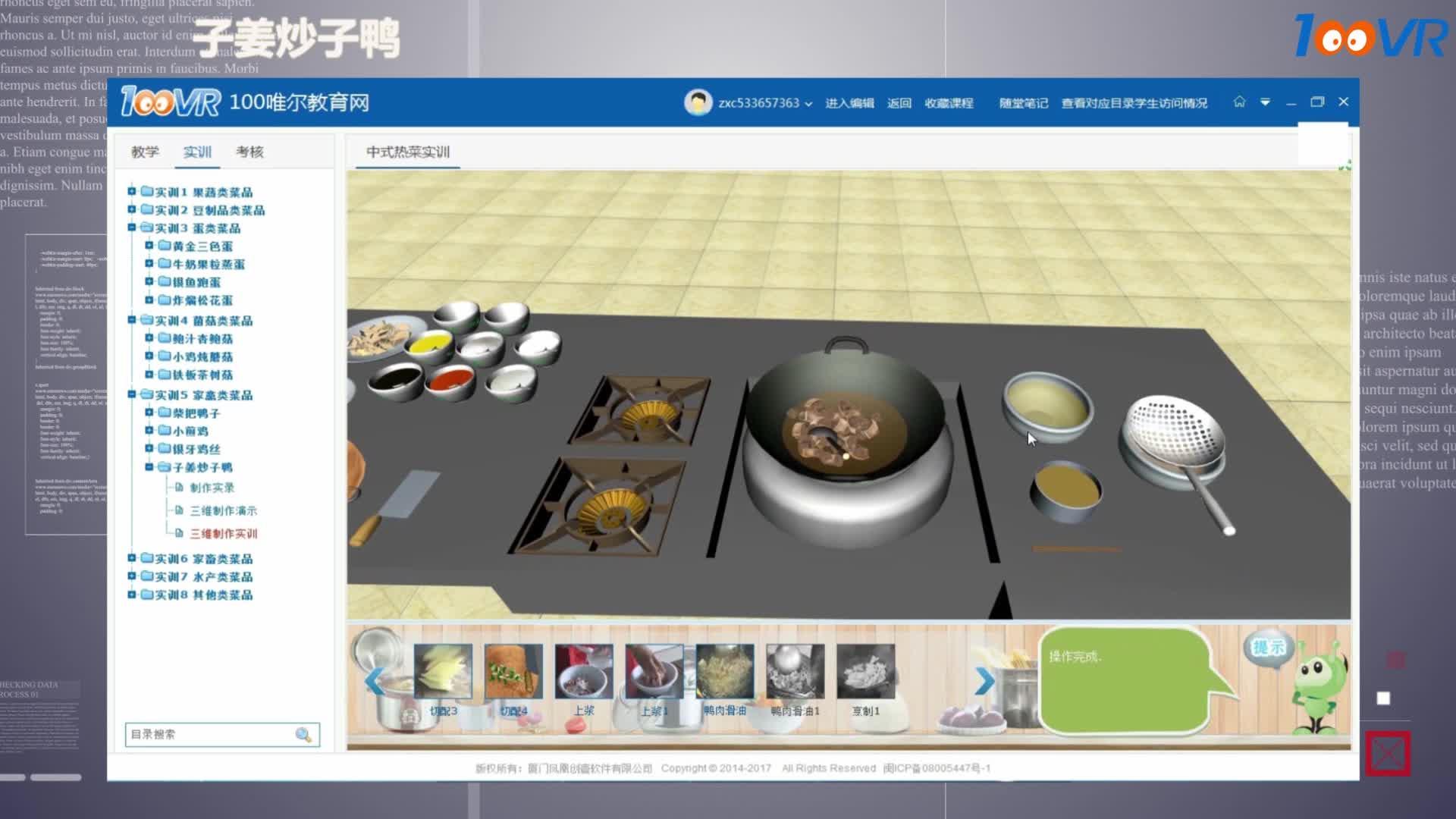 今天100唯尔教育小编就结合100唯尔教育《中式热菜实训》VR仿真课程来介绍下鸭子的做法。