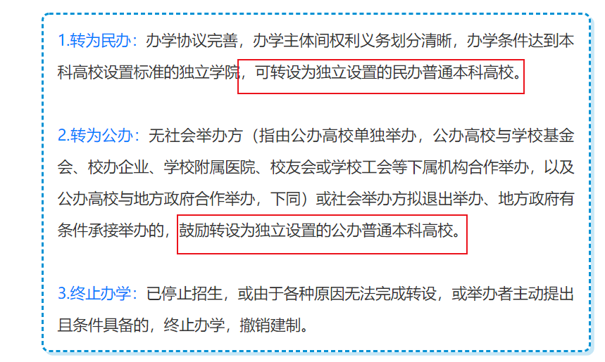 不过部分学校民办性质主办方是政府,也有可能转设为公办,比如浙江大学城市学院以前为浙江大学和杭州市政府共建,现在转设为浙大城市学院,且有民办转公办。