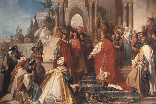 自从476年罗马帝国灭亡后,欧洲便进入了漫长的中世纪时期。期间由日耳曼人建立的大大小小王国如走马灯一样你方唱罢我登场。比如上文提到的法兰克王国后来分裂为三部分,即西法兰克王国(843年-987年)、中法兰克王国(843年-855年)、东法兰克王国(843年-911年),这三个王国分别奠定了后来法兰西、意大利、德意志三个国家的基础。但值得一提的是,现代的法国、意大利、德国都不是法兰克王国的直系后裔,他们是由后来在各自领地上的诸多小邦小国慢慢整合而成的。