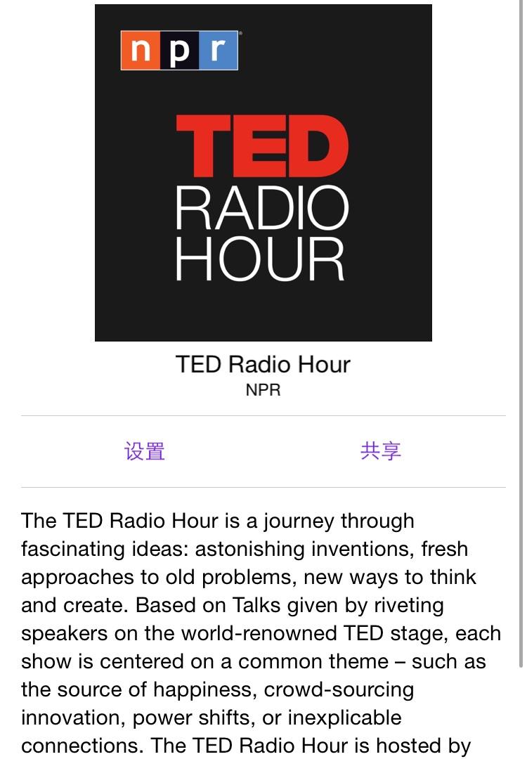 每期一个主题,节选很多有名的TED演讲,还会采访一些演讲者,很不错。