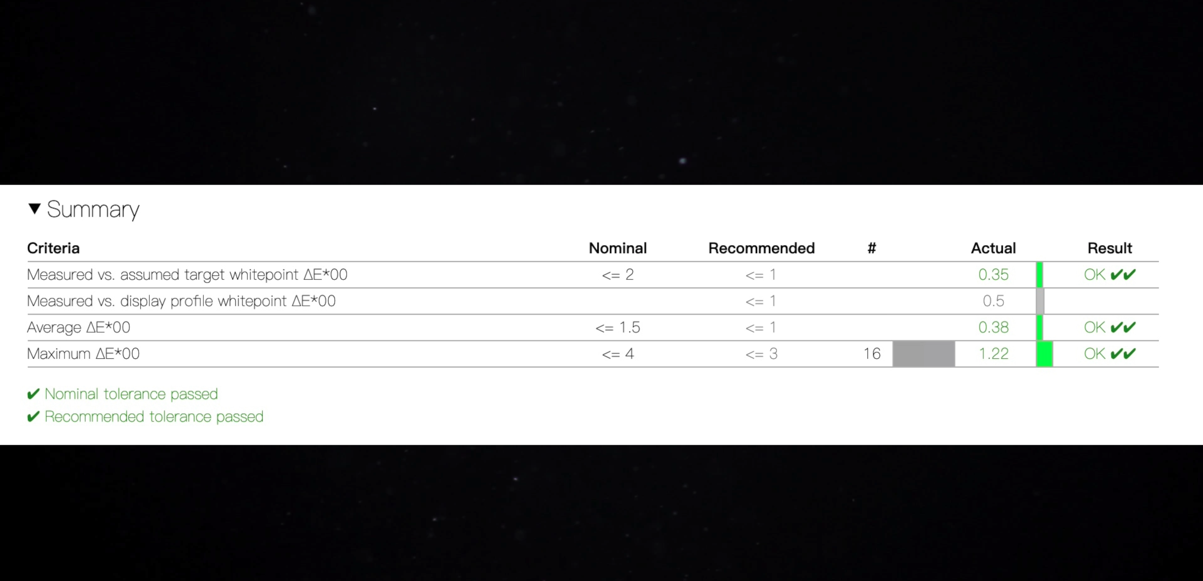 色准方面,51项色彩取样后