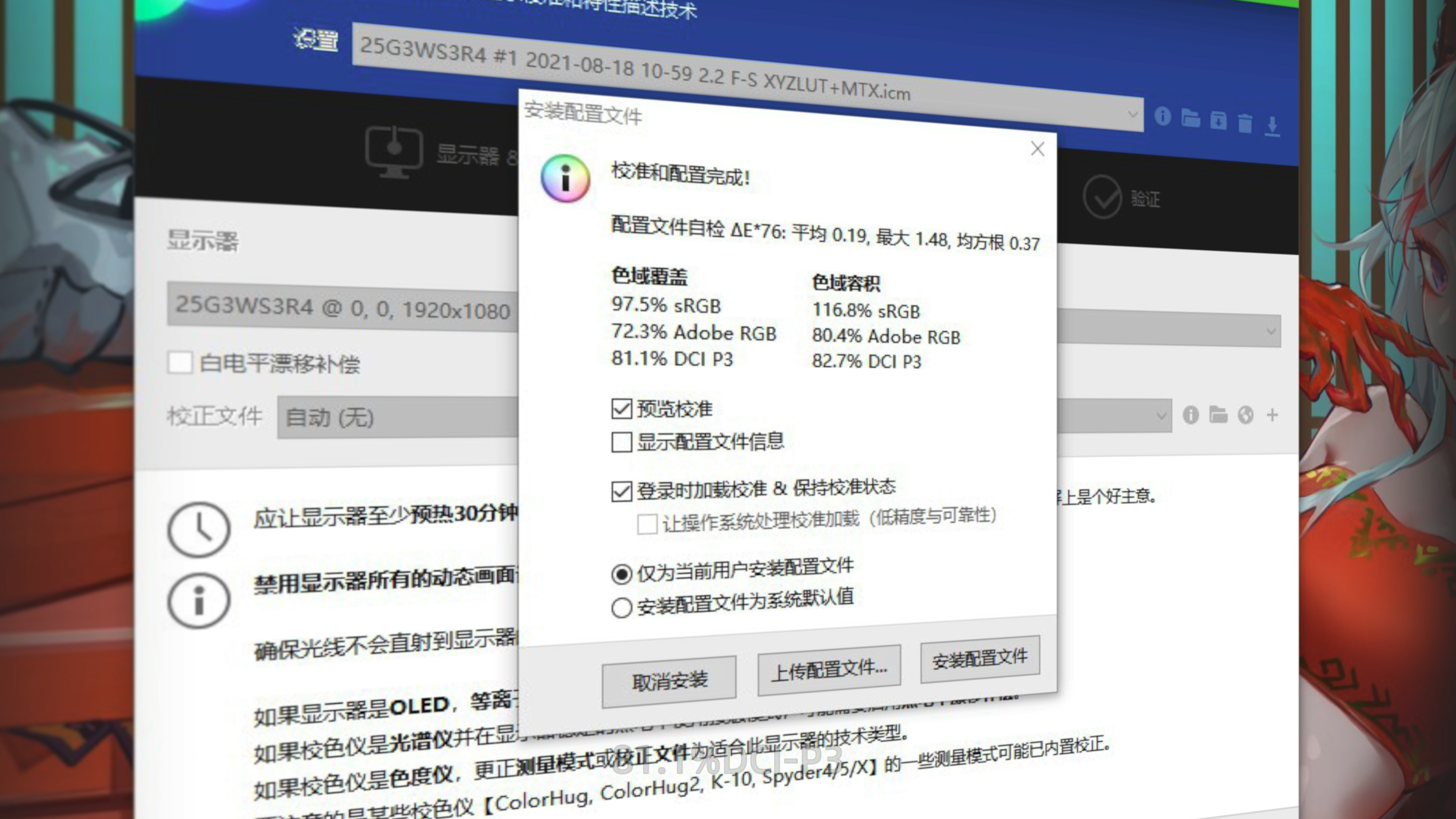 97.5的sRGB,72.3%的Adobe RGB,81.1%DCI-P3。