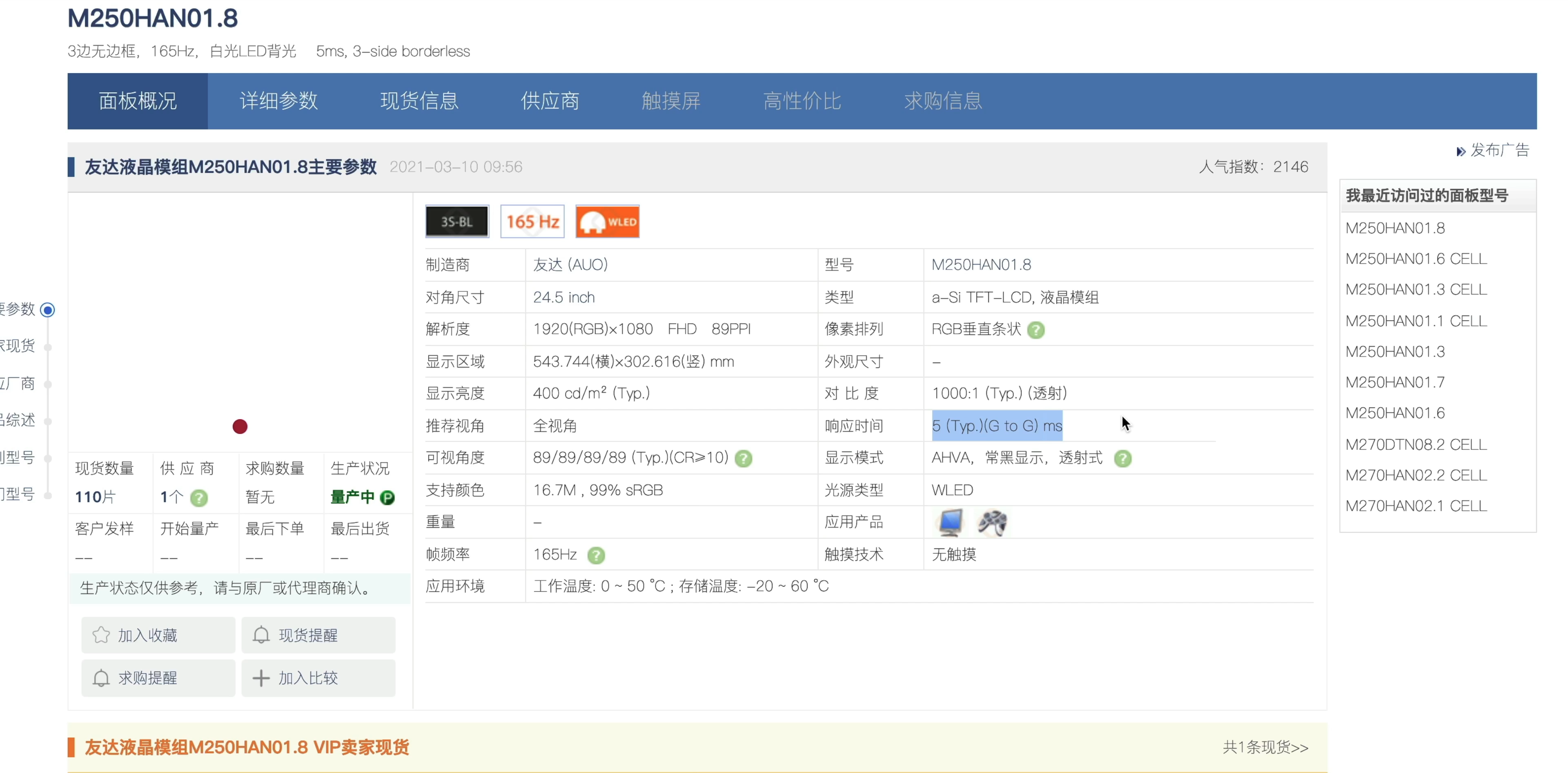 经过筛选搜查,可以判定是友达1.8的面板,
