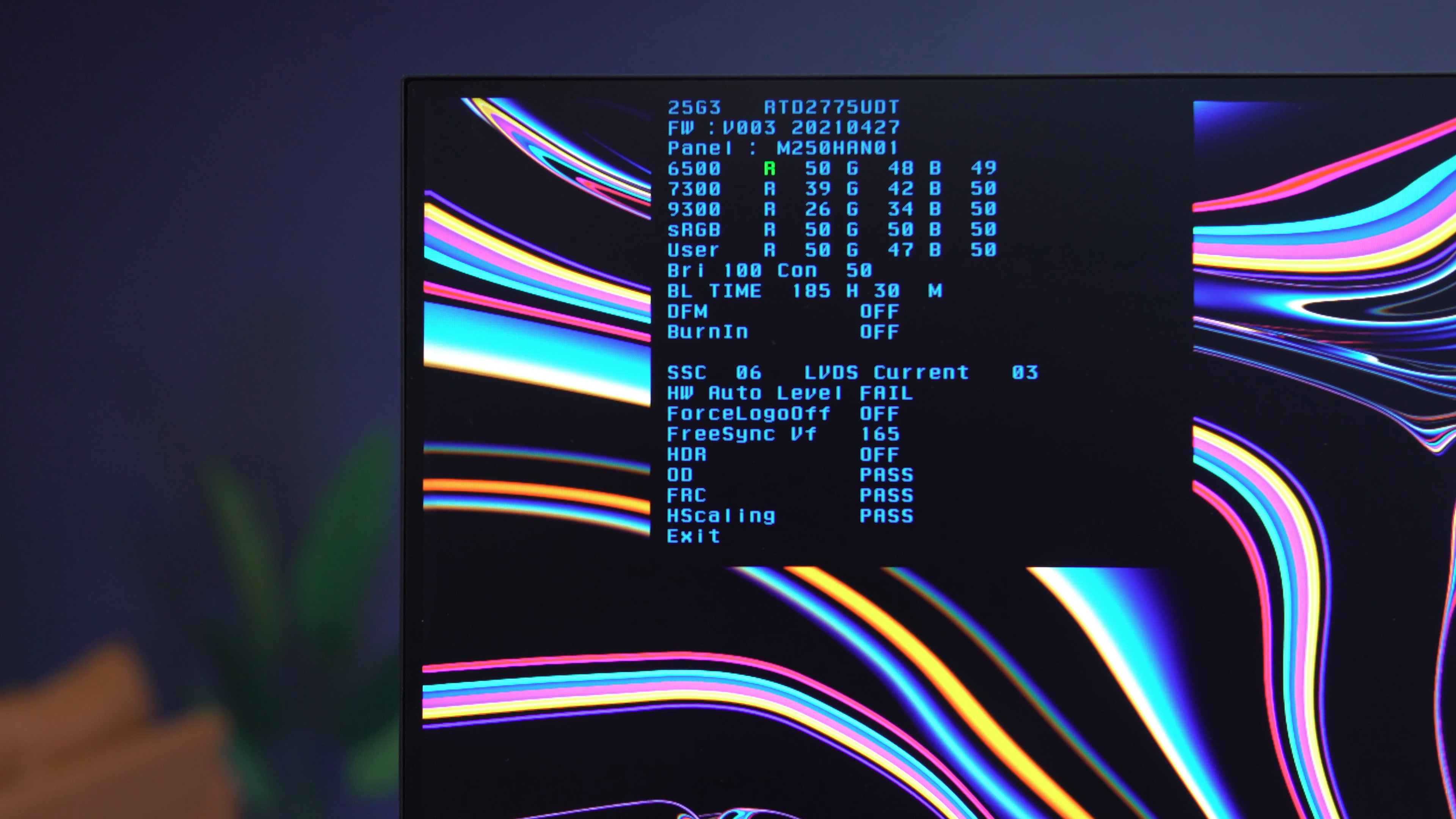 面板方面,工程模式里查到的是M250HAN01,