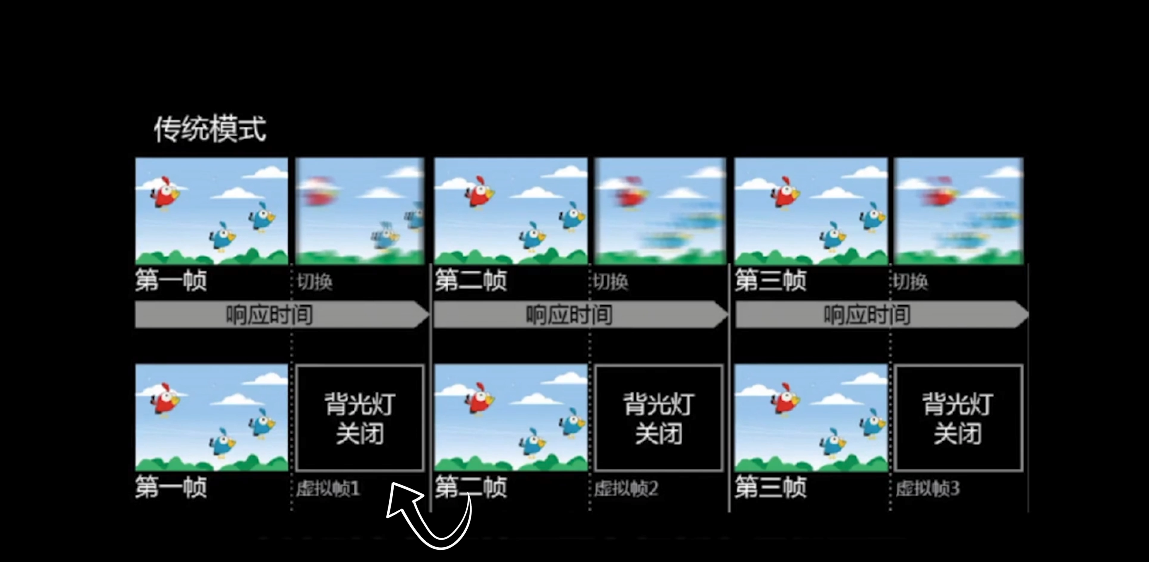 通过关闭背光,来达到液晶分子翻转时产生的残影