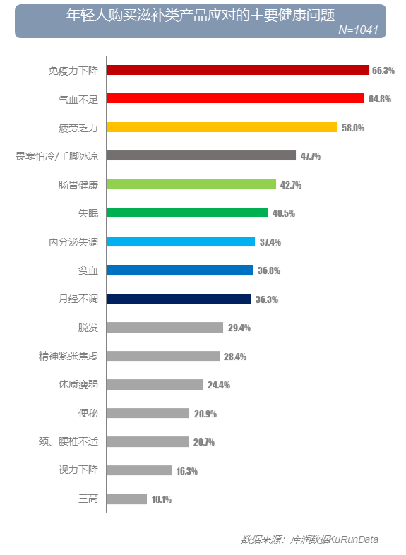 免疫力下降、气血不足、疲劳乏力 是年轻人购买滋补类产品想要应对的主要健康问题。