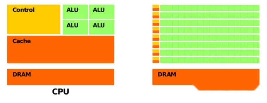 你可以简单的将CPU理解为学识渊博的教授,什么都精通,而GPU则是一堆小学生,只会简单的算数运算,可即使教授再神通广大,也不能一秒钟内计算出500次加减法, 因此对简单重复的计算来说单单一个教授敌不过数量众多的小学生 ,在进行简单的算数运算这件事上,500个小学生(并发)可以轻而易举打败教授。